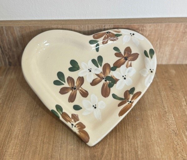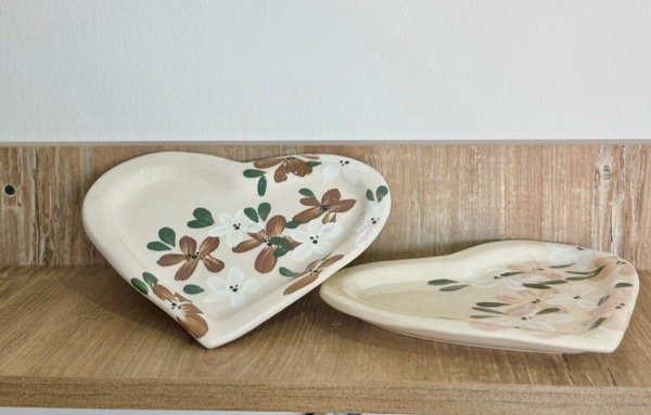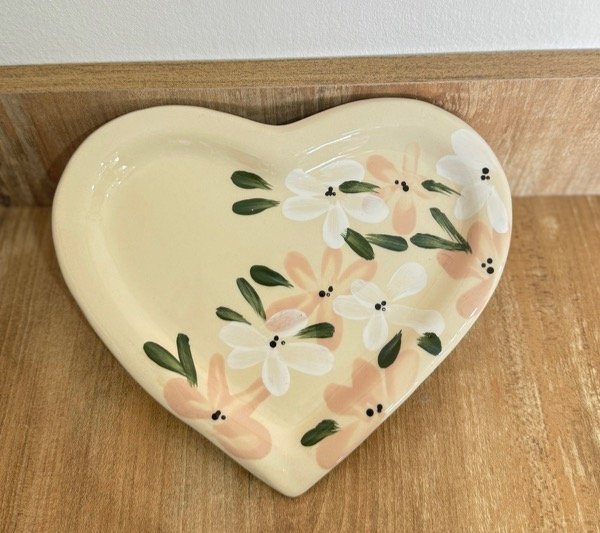 Añade un toque de amor y delicadeza a tu mesa con este encantador plato de cerámica en forma de corazón. Cada pieza es única, cuidadosamente hecha y pintada a mano por artesanos expertos. El diseño floral pintado a mano le da un estilo cálido y natural que combina a la perfección con cualquier decoración.