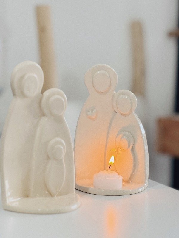 Este pesebre minimalista de cerámica es una reinterpretación moderna del clásico nacimiento, ideal para aquellos que buscan una decoración navideña elegante y sobria. Compuesto únicamente por las figuras de María, José y el Niño Jesús, su diseño simple y líneas suaves capturan la esencia de la Navidad sin perder el sentido de paz y espiritualidad.