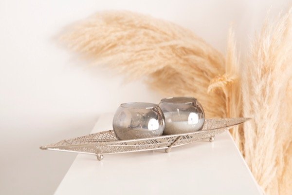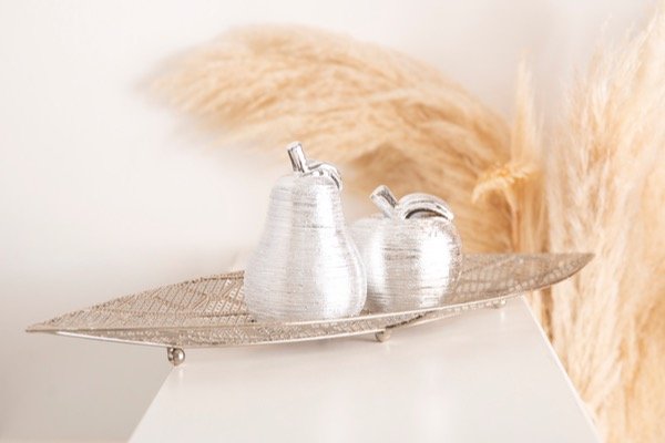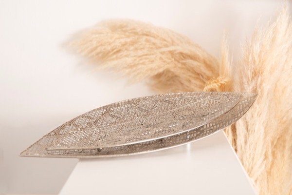 Bandeja decorativa metálica en forma de hoja, con un delicado diseño calado que aporta elegancia y sofisticación a cualquier espacio. Ideal para usar como centro de mesa, para exhibir velas, flores secas o simplemente como pieza ornamental. Su acabado plateado resalta con la luz y combina perfectamente con estilos modernos, clásicos o naturales. ✨
