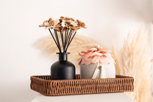 Set de bandejas rectangulares de mimbre sintético, resistentes y prácticas para decorar y organizar. Su diseño natural aporta calidez y un estilo rústico-chic a cualquier ambiente. Ideales para presentar desayunos, organizar objetos o usar como base decorativa en mesas y estantes. 🌿✨