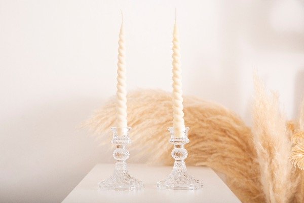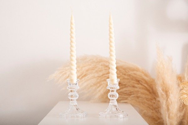 Elegancia y calidez en un solo detalle. Estas velas de diseño retorcido aportan un toque sofisticado y moderno a cualquier ambiente.