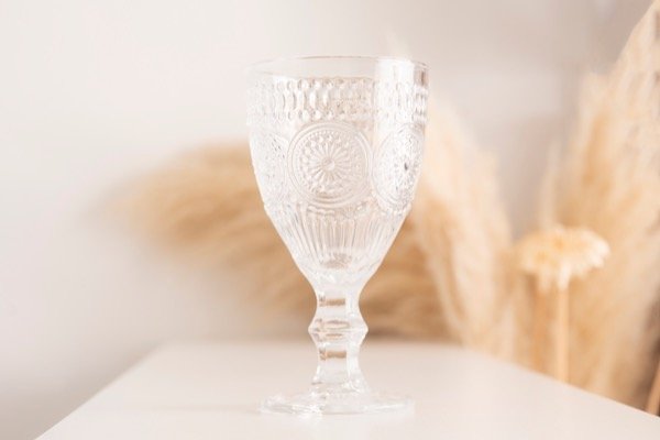 Una pieza que eleva cualquier mesa con su encanto clásico y detalles artesanales. Nuestra copa labrada en vidrio combina elegancia con un aire retro que no pasa desapercibido. Su diseño detallado en relieve la convierte en el complemento perfecto para ocasiones especiales, cenas románticas o simplemente para disfrutar tu bebida favorita con estilo.