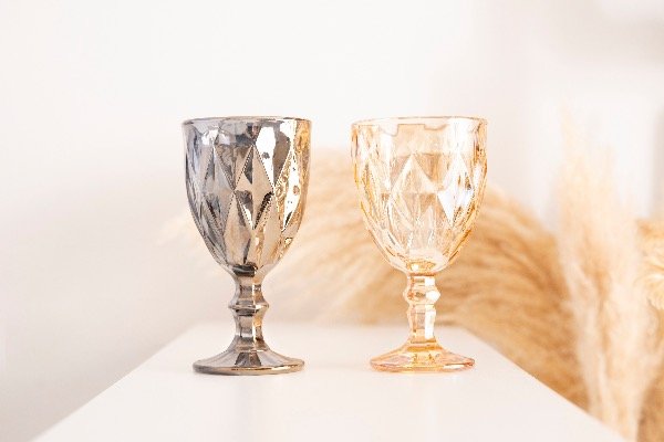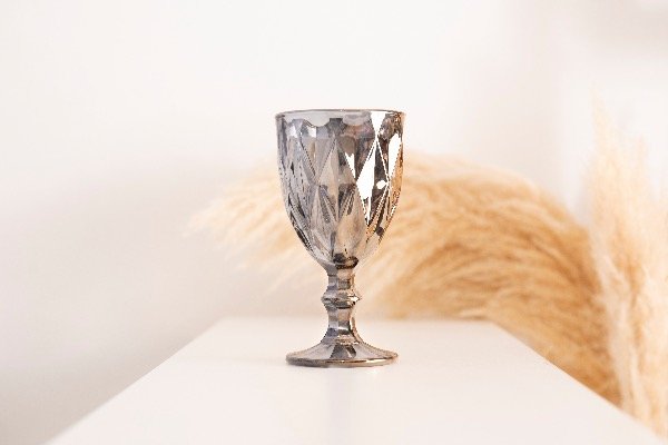Copa de vidrio con diseño tallado, ideal para vestir tu mesa o sumar un toque sofisticado a la decoración. Disponible en tonos ambar y gris, combina a la perfección con estilos clásicos, románticos o naturales.