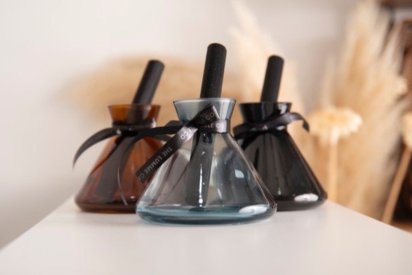 Elegancia y aroma en un solo objeto. El Difusor Inhala está diseñado para destacar en cualquier ambiente gracias a su envase de vidrio cónico con terminación laqueada, convirtiéndose en un accesorio decorativo de gran presencia.