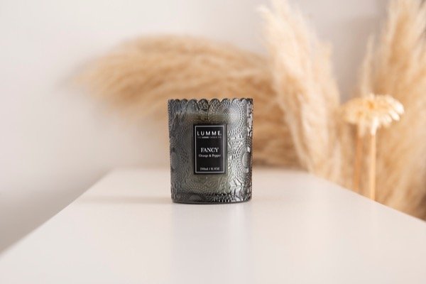 Una pieza elegante y sofisticada que combina diseño y aroma. Su envase de vidrio tallado en relieve la convierte en un objeto decorativo único, ideal para realzar cualquier espacio.