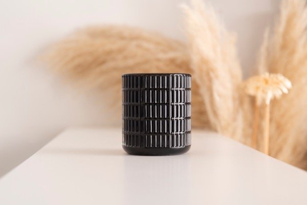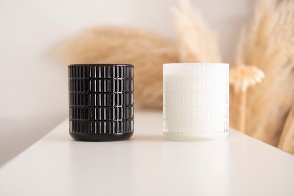 Un diseño elegante y moderno en frascos de vidrio texturado, disponibles en blanco y negro. Su estilo minimalista y sofisticado convierte a esta vela en el complemento perfecto para cualquier ambiente, aportando calidez, luz y un toque decorativo único.